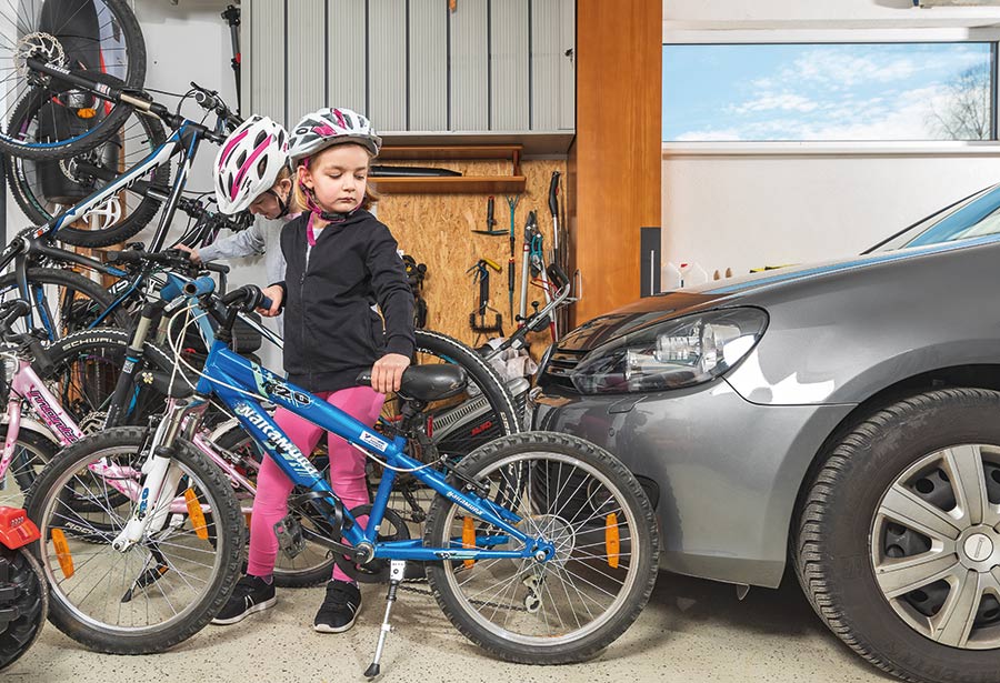 „Stell‘s in die Garage“ lautet die Standardlösung für alles, was man im Laufe des Jahres outdoor braucht. Und so landet von der Rodel über den Rasenmäher bis hin zu Skiern und Rädern alles in der Garage, wo es langsam aber sicher gefährlich eng wird für das geliebte Blech auf vier Rädern: das Auto! Letzteres ist vor allem vom unachtsamen Einund Ausparken der Kinderfahrräder betroffen, was böse Kratzer im Lack hinterlässt. Die Lösung? Die Fahrrad-Garagen von Biohort.