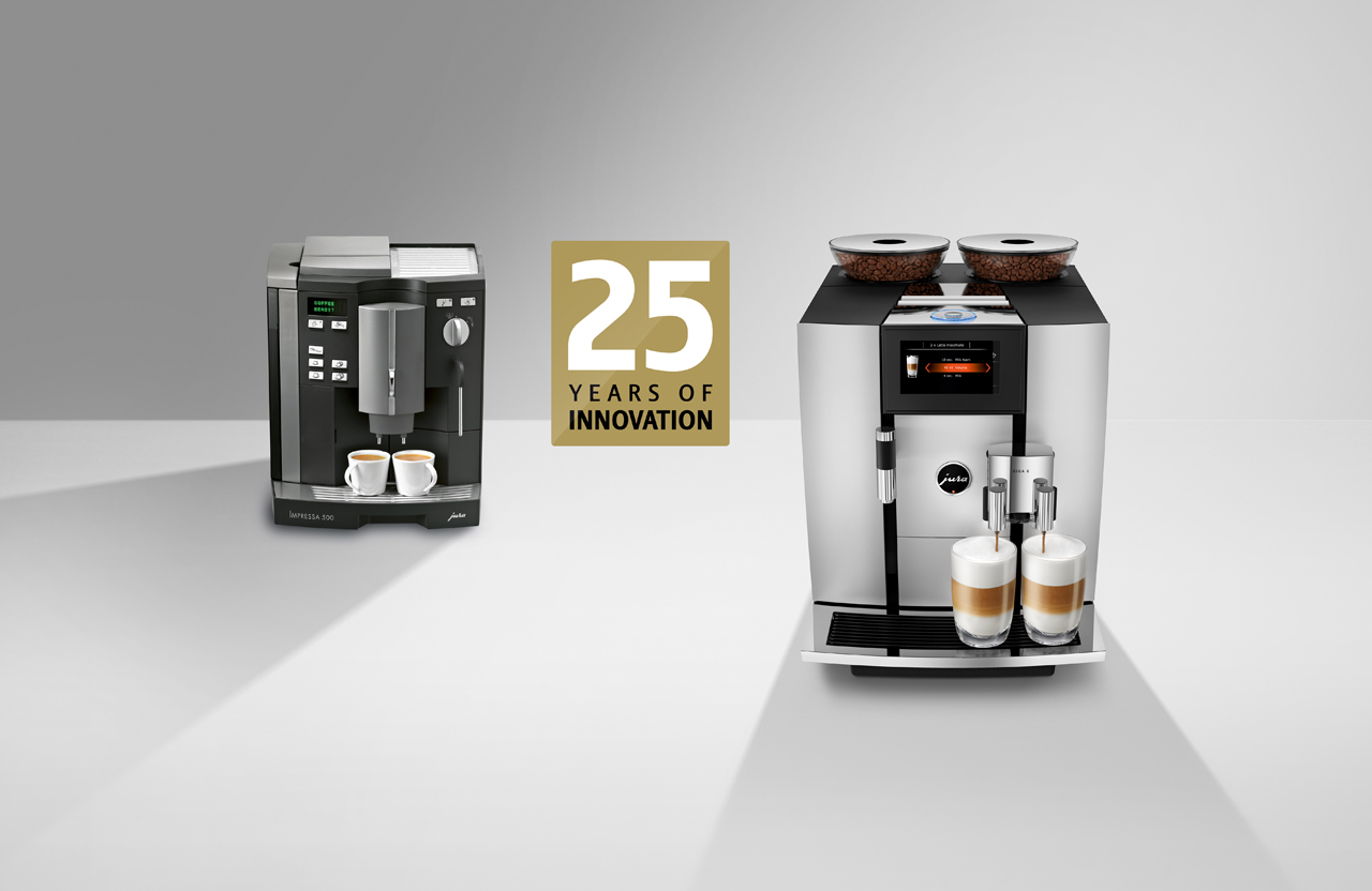 Niederbuchsiten, 14. September 2019 – Man schreibt den 14. September 1994. Für JURA beginnt mit der Lancierung der Impressa 500 die Entwicklung hin zum Spezialisten für Kaffeevollautomaten und damit der Erfolgszug um die Welt. Nach 25 Jahren geprägt von konsequentem Fokus und der Leidenschaft für perfekte Kaffeespezialitäten ist JURA heute Innovationsleader für Premium-Kaffeevollautomaten und global in über 50 Märkten tätig. Im Produktesortiment von JURA vereinen sich das Wissen und die Erfahrung aus über 5 ½ Millionen produzierten Vollautomaten. Sämtliche Produkte zeichnen sich durch modernste Technologien, höchste Qualität, ein klares, charakteristisches Design, intuitive Bedienung sowie ein perfektes Kaffeeresultat in der Tasse aus. Und das gelingt bei JURA stets auf Knopfdruck – frisch gemahlen, frisch extrahiert. An dieser einfachsten Art vollendeten Genusses arbeiten bei der Schweizer Premiummarke 70 Ingenieure.