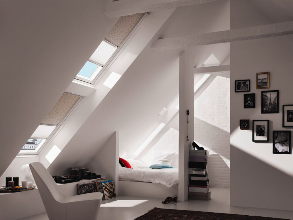 Die Wunschfarbe lässt sich mit einem Online-Konfigurator auf der Website von Velux, beim Handwerker oder im Fachhandel auswählen. Der Code aus Buchstaben und Zahlen auf dem Typenschild des Fensters verrät alle benötigten Maße. Es findet sich bei geöffnetem Fenster meist links hinter der Griffleiste. Dank des „Pick & Click“-Systems von Velux lassen sich Rollos und Plissees in wenigen Minuten selbst montieren.