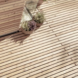 In ihrer feingliedrigen Erscheinung zeigen die Profile PAR 20 eine schöne flächige Wirkung. Auch ein geringeres Schüsseln der Terrassendielen ist gegeben. Durch die abgeschrägte Geometrie der Vollholzprofile wirkt das Fugenbild des Terrassenbodens schmäler und ist zugleich blickdichter.