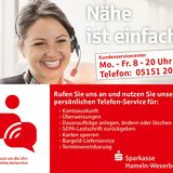 Sparkasse Hameln-Weserbergland - Finanzierung und AnlageDie Sparkasse Hameln-Weserbergland bietet gerade älteren Menschen mit dem Kundenservicecenter eine bequeme und sichere Alternative zum Filialbesuch an.