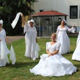 Tönebön Stiftung - Betreuung und PflegeUnser Dream-Team in der Stiftung (Birgit, Cornelia, Jacqueline, Jessica und Rike) tanzte sich in die Herzen der Bewohner. Ganz in Weiß (…aber ohne Blumenstrauß) hatten sie passend zu beschwingten Melodien fließende Bewegungen abgestimmt und überraschten Bewohnerinnen und Bewohner in den Gärten der Stiftung (Oh, war das eine Hitze….)
